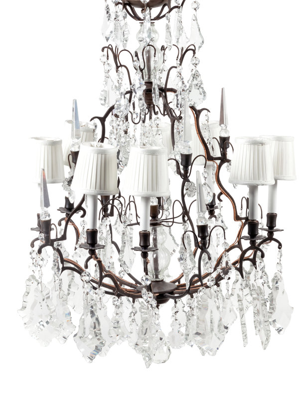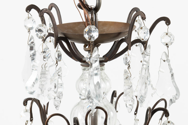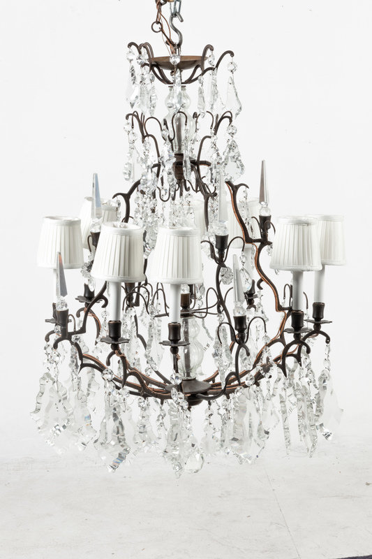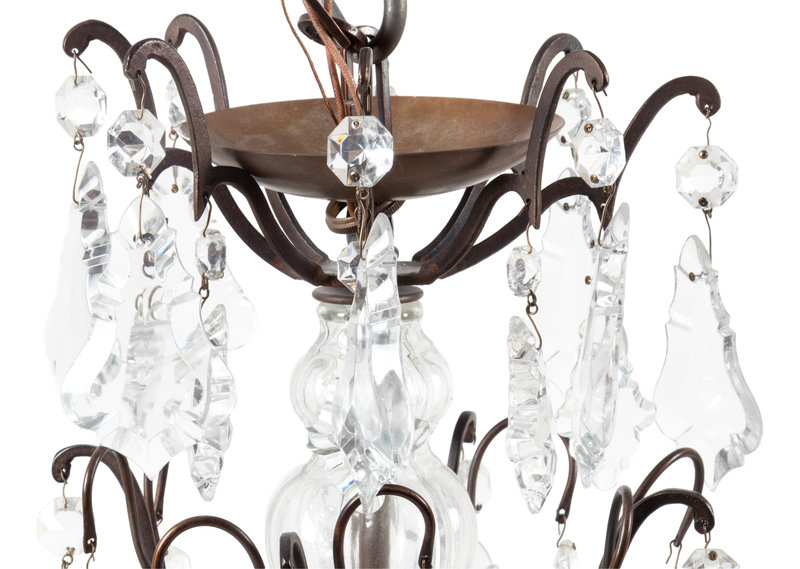 A French Patinated Metal and Cut Glass Eight-Light Chandelier