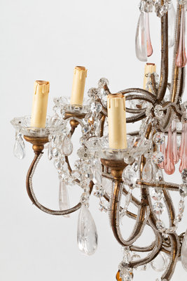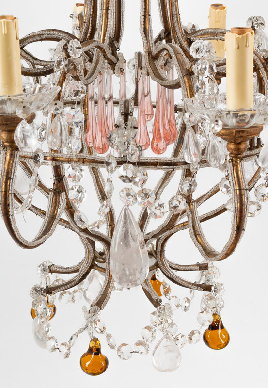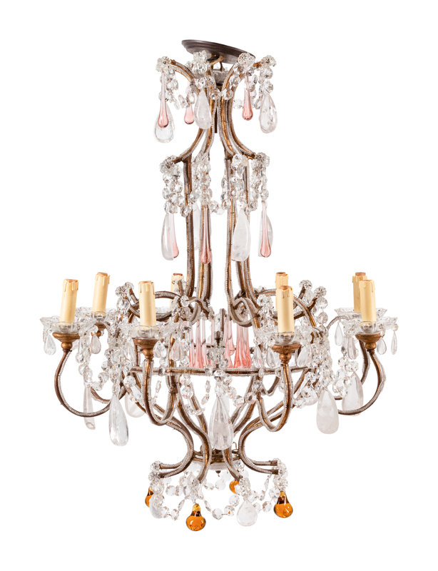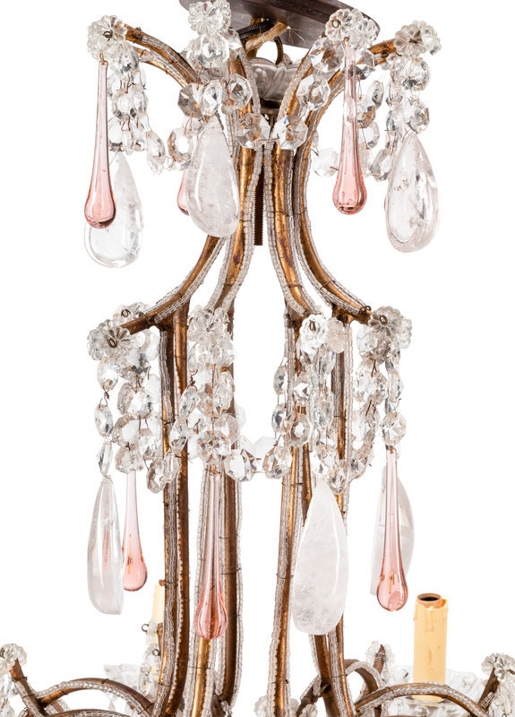 A French Neoclassical Style Eight-Light Chandelier with Glass and Rock Crystal Prisms