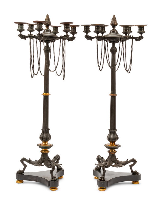A Pair of French Neoclassical Style Bronze Six-Light Candelabra