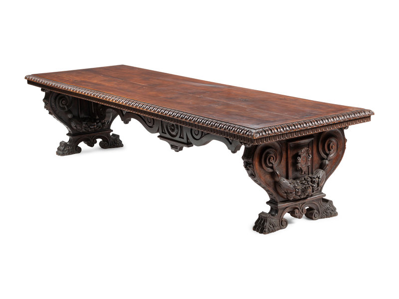 An Italian Renaissance Revival Carved Walnut Refectory Table