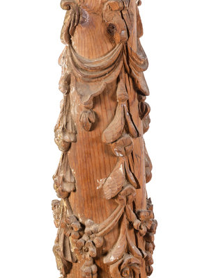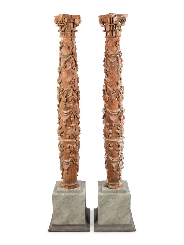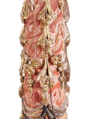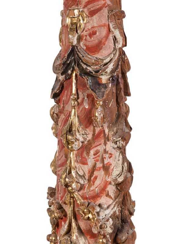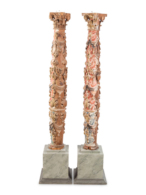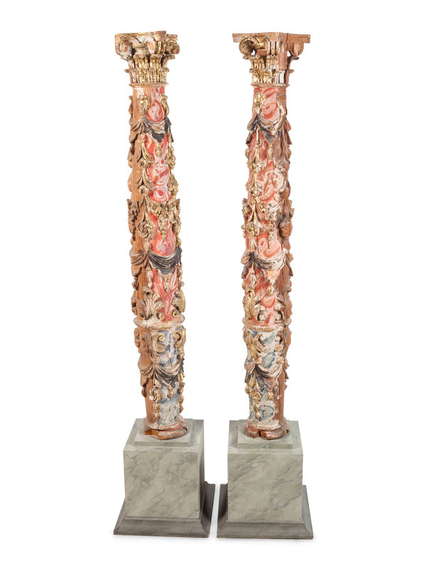 A Pair of Spanish Painted and Parcel Gilt Solomonic Columns