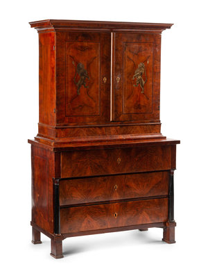 An Italian Parcel Ebonized Burl Walnut Cabinet-on-Chest