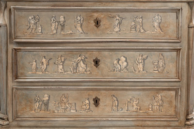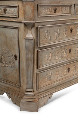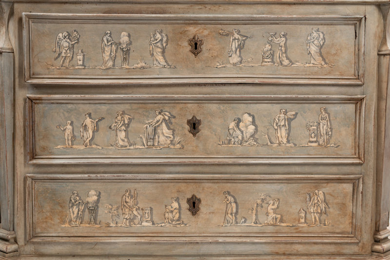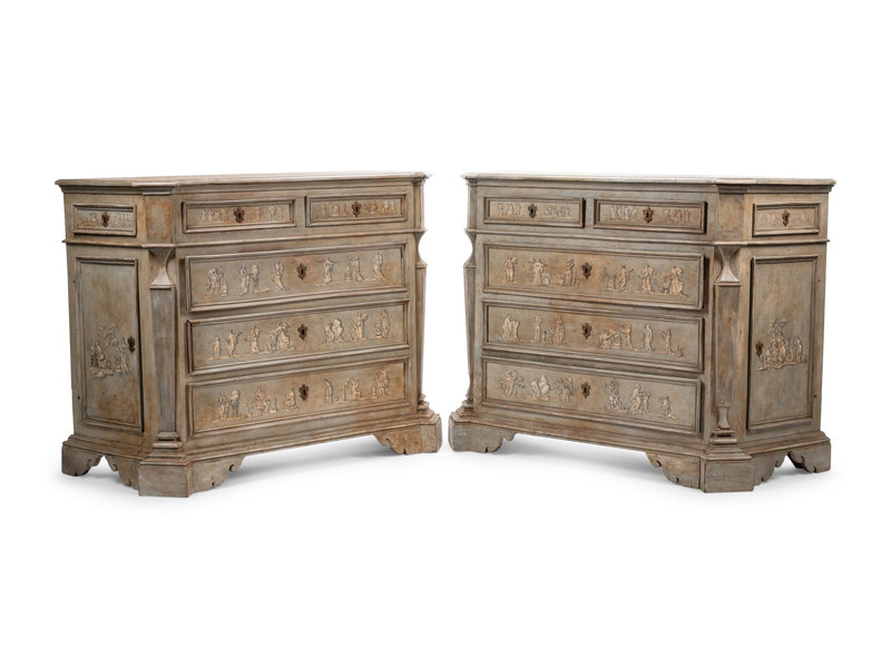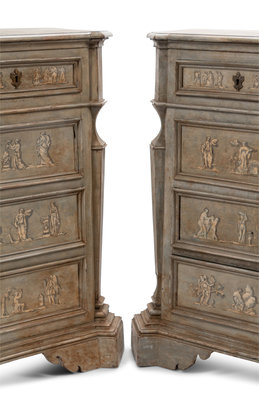 A Pair of Venetian Style Gray-Painted Side Cabinets