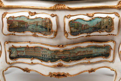 the inset hand-painted panels depicting scenes of Venice.