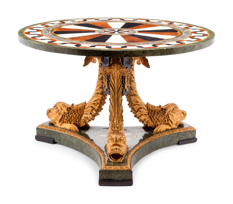 An Italian Parcel Gilt Specimen Marble Center Table