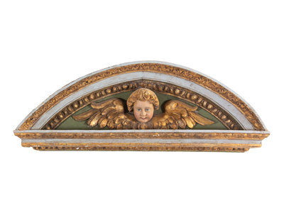 A Baroque Painted and Parcel Gilt Transom Ornament