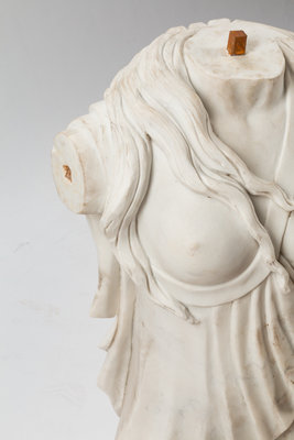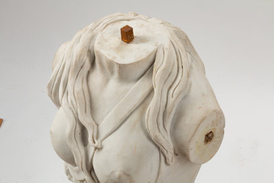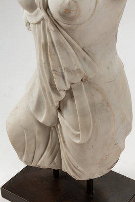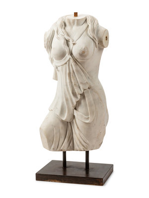 An Italian Carved White Marble Female Torso on an Iron Base