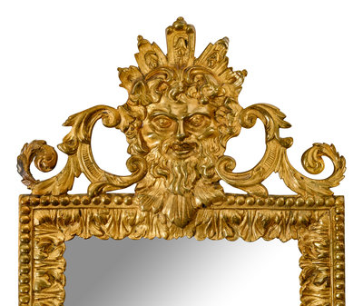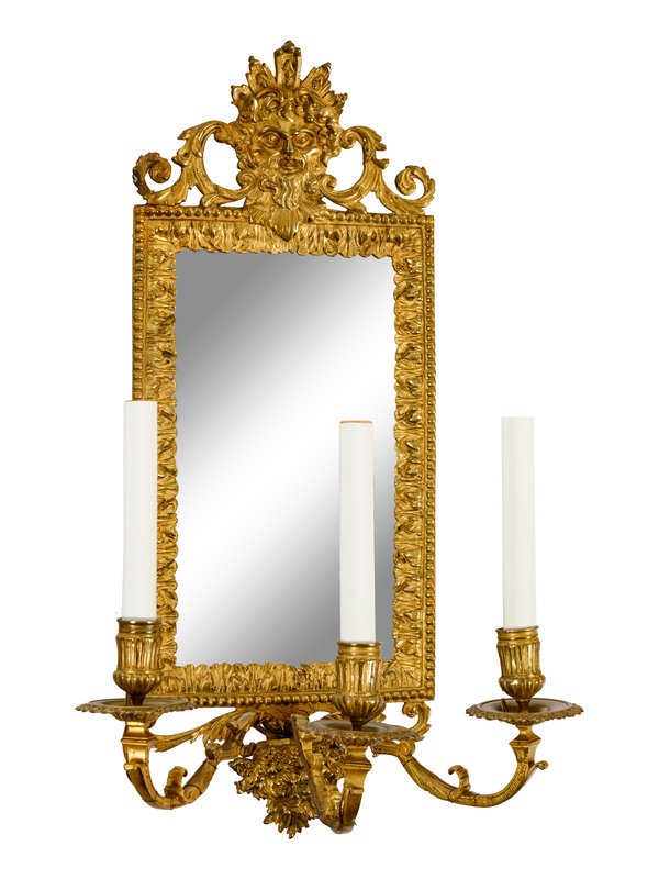 A Pair of Continental Mirror-Inset Gilt Brass Three-Light Girandoles