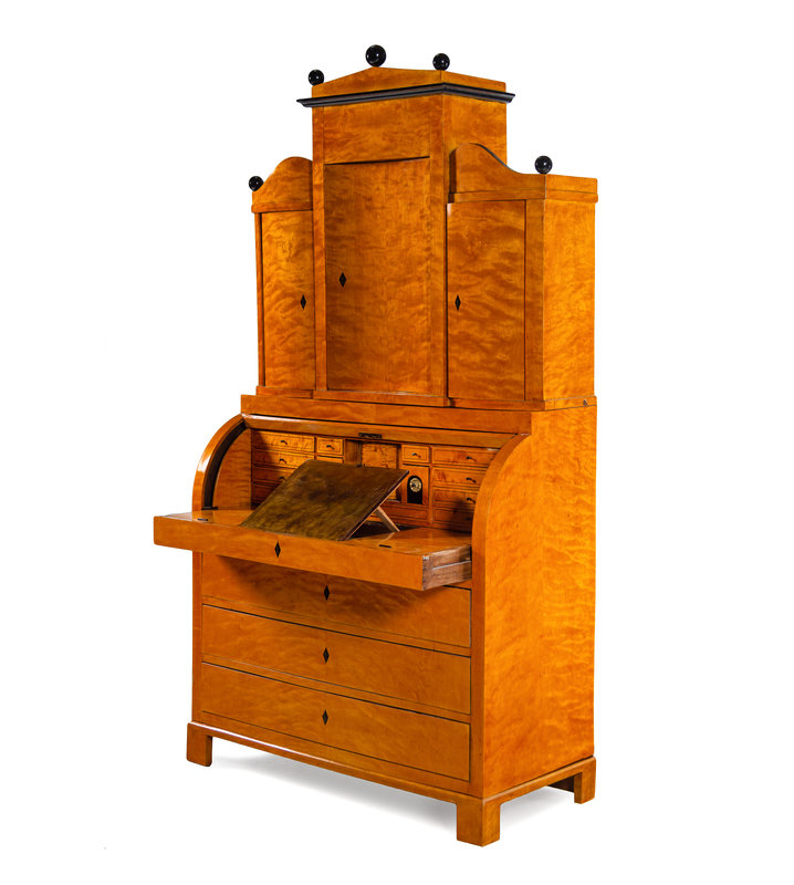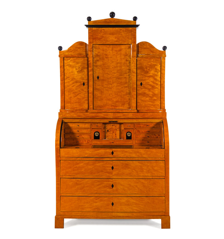 A Biedermeier Parcel Ebonized Birch Secretary Bureau