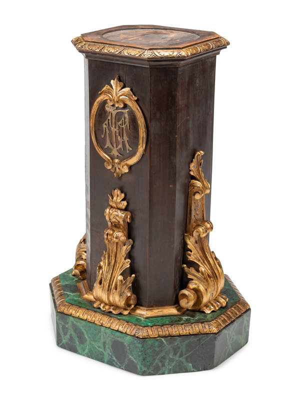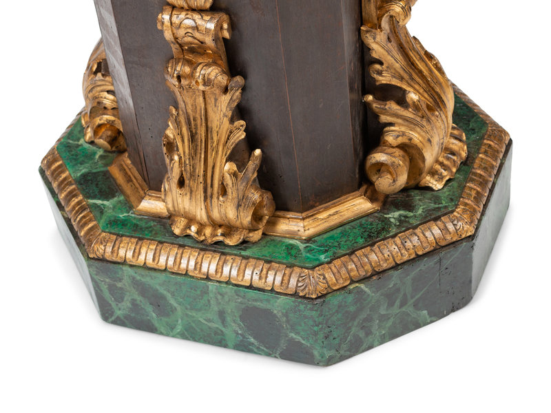 A Continental Bronze Mounted Faux Marble Painted and Parcel Gilt Pedestal