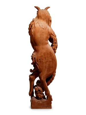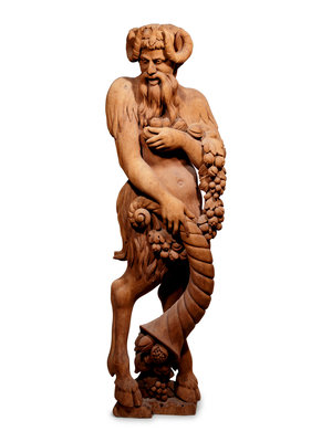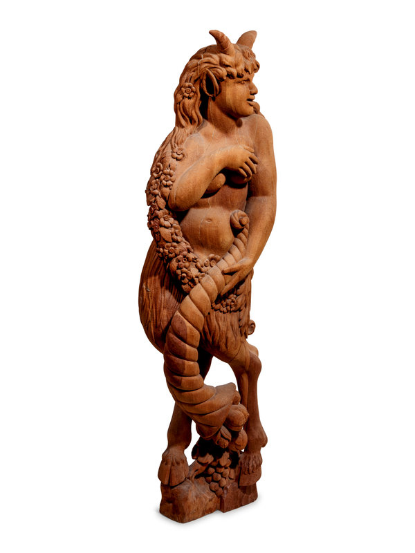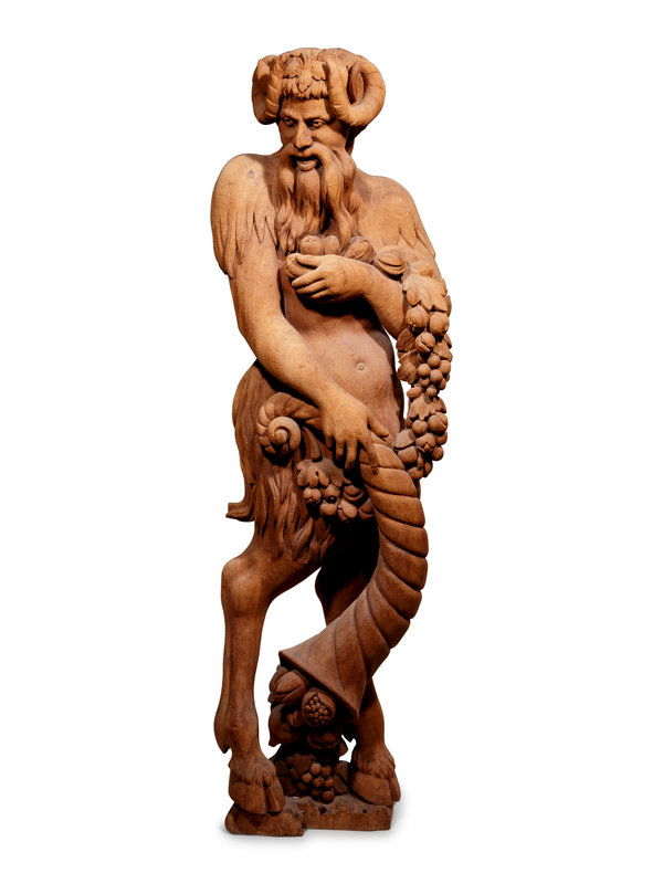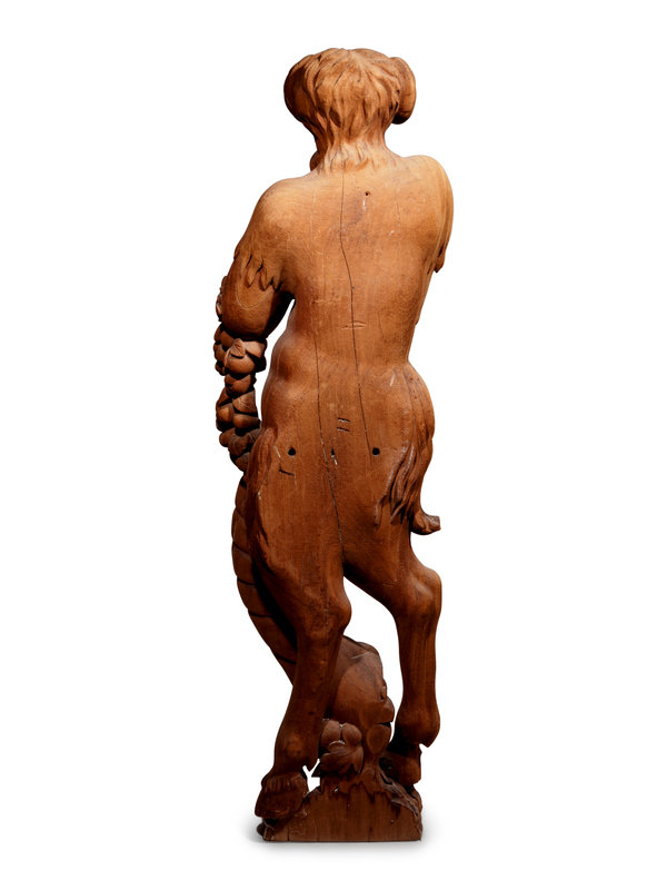 Two Continental Carved Wood Bacchic Figures of a Satyr and Satyress