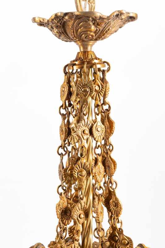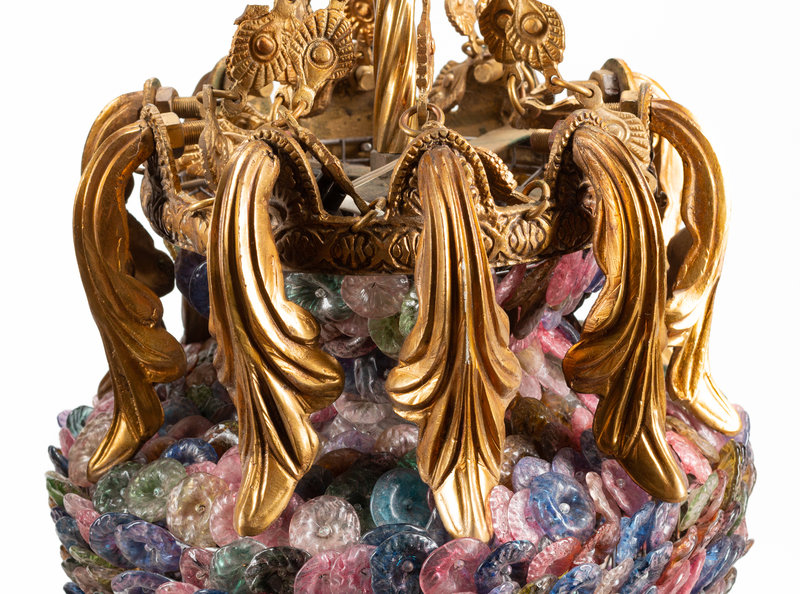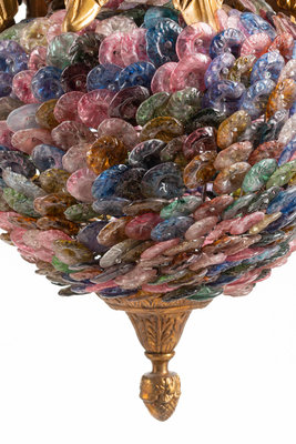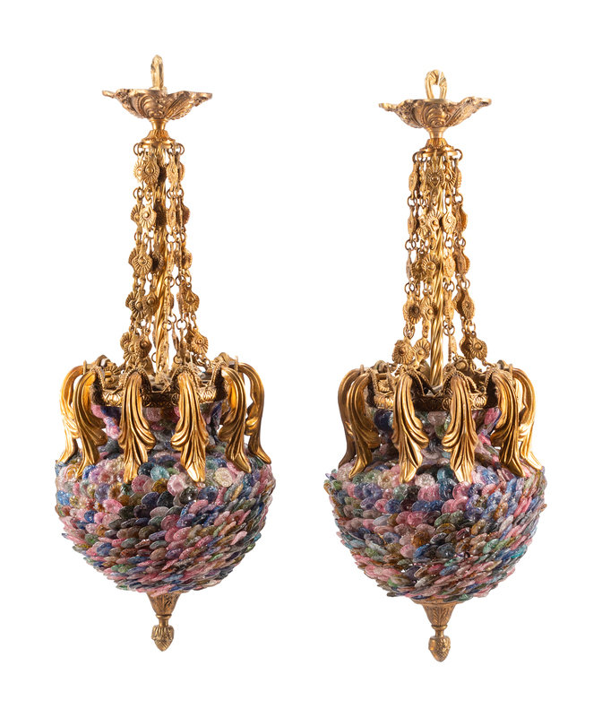 A Pair of Continental Gilt Bronze and Colored Glass Lanterns