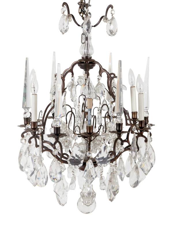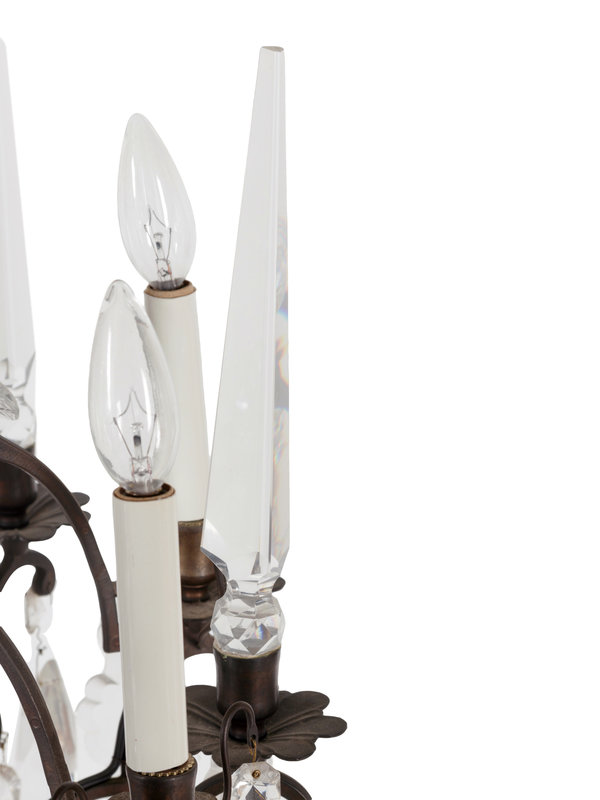 A Gilt Bronze and Glass Six-Light Chandelier with Fruit Prisms