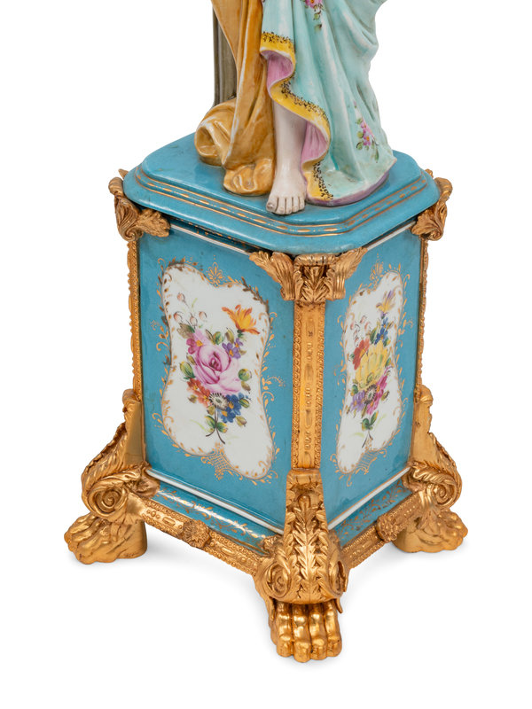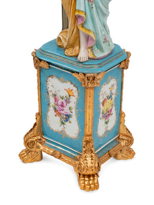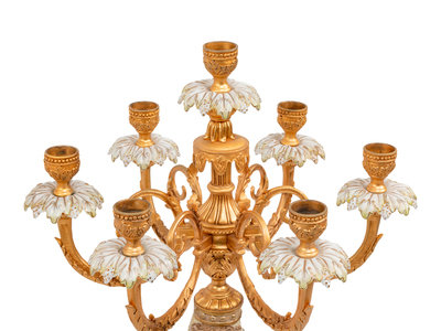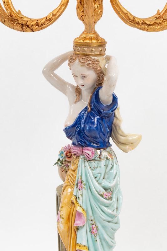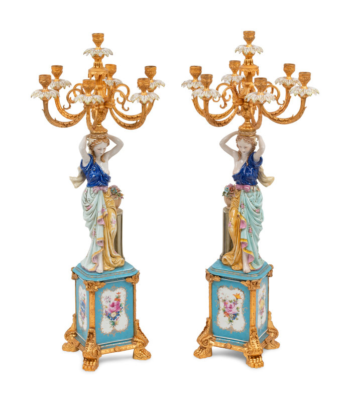 A Pair of German Porcelain and Gilt Bronze Figural Seven-Light Candelabra