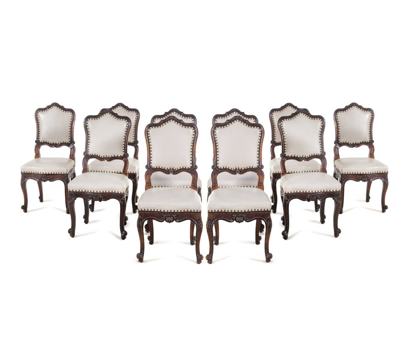 A Set of Ten Louis XV Provincial Oak Dining Chairs