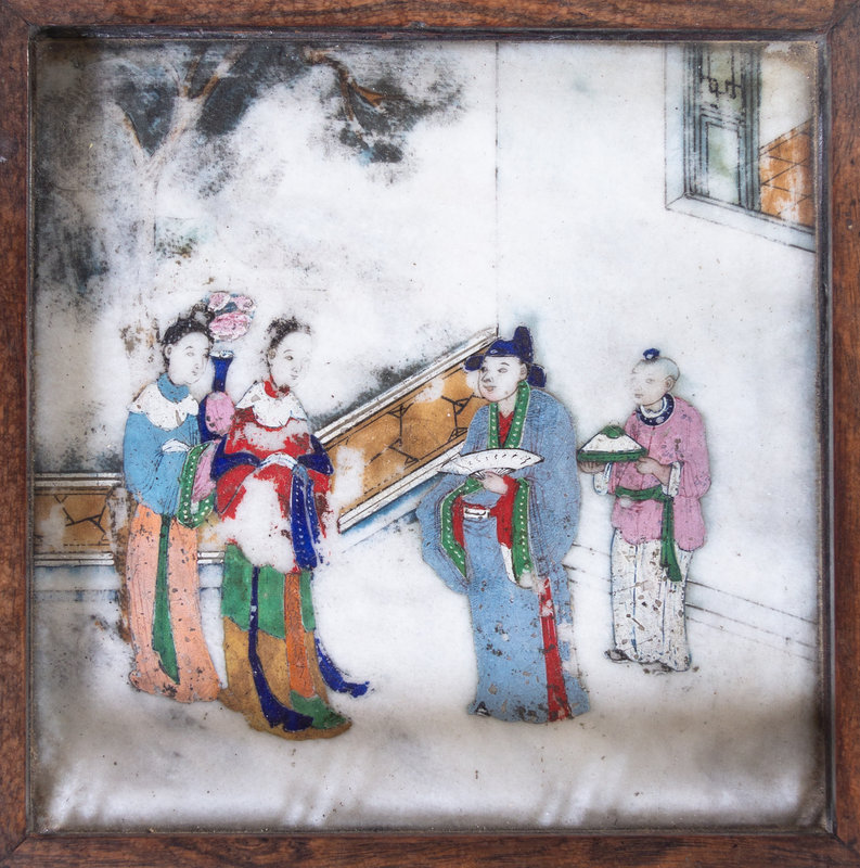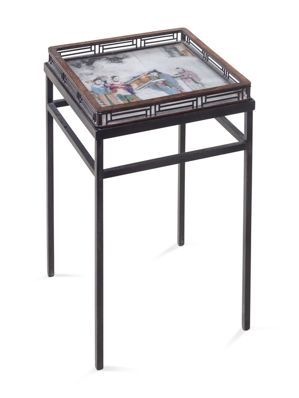 A Chinese Painted Marble Inset Huanghuali Wood Tray