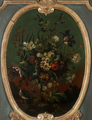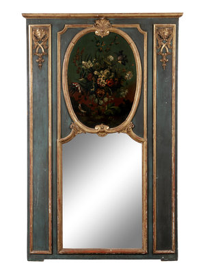 A Louis XV Style Painted and Parcel Gilt Pier Mirror