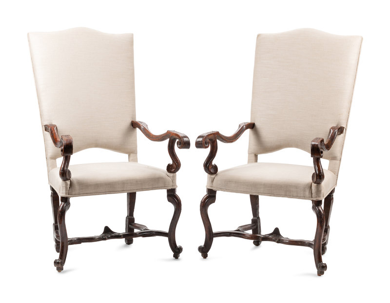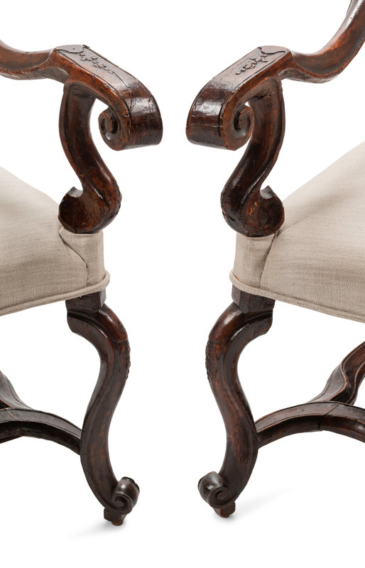 A Pair of Régence Carved Walnut Fauteuils
