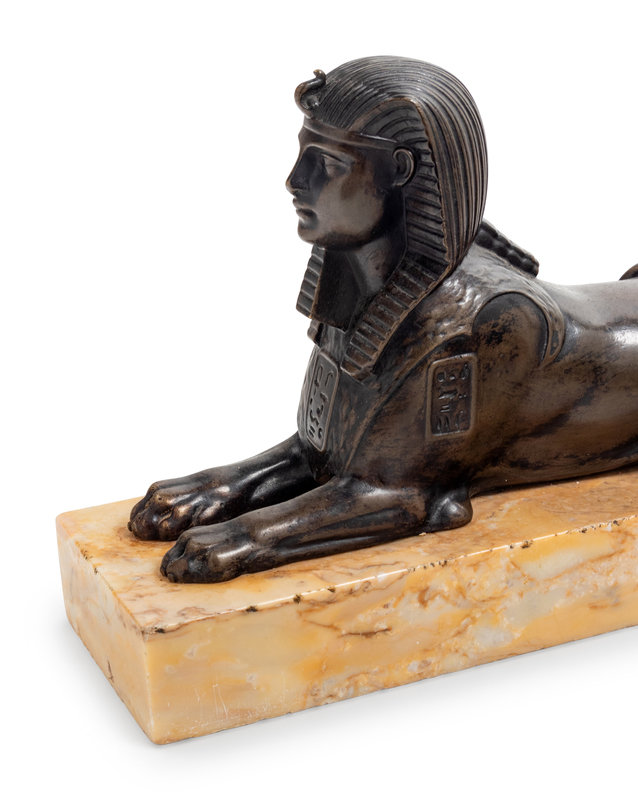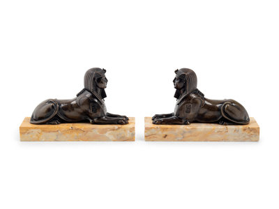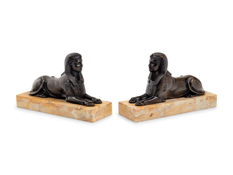 A Pair of Empire Style Cast Bronze Sphinx-Form Bookends