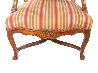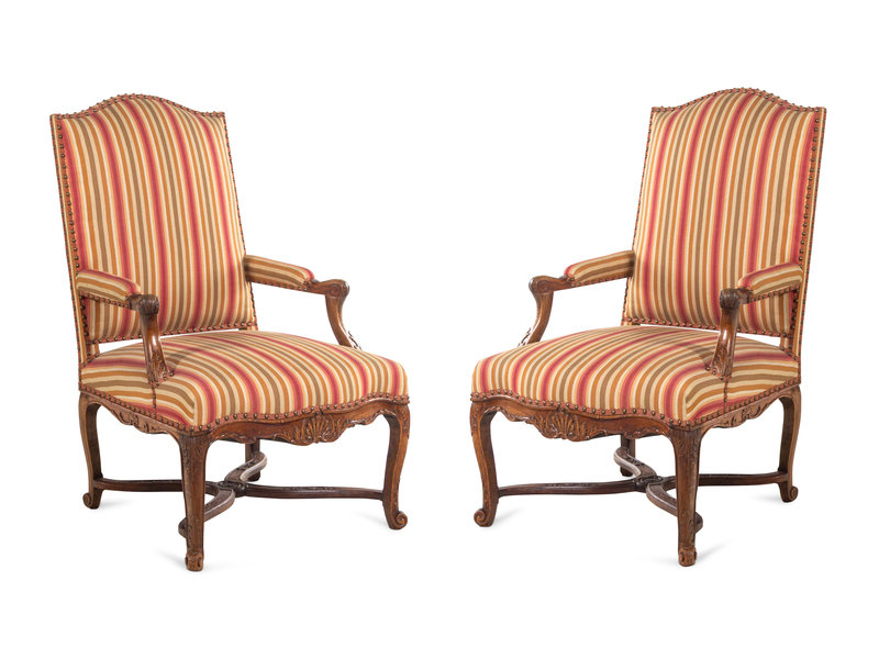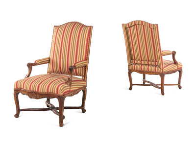 A Pair of Régence Carved Walnut Armchairs