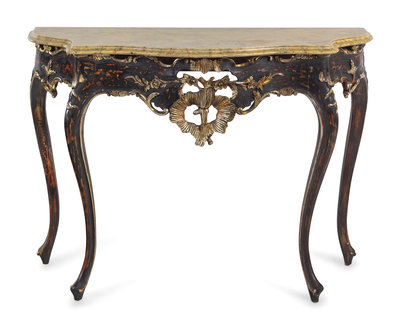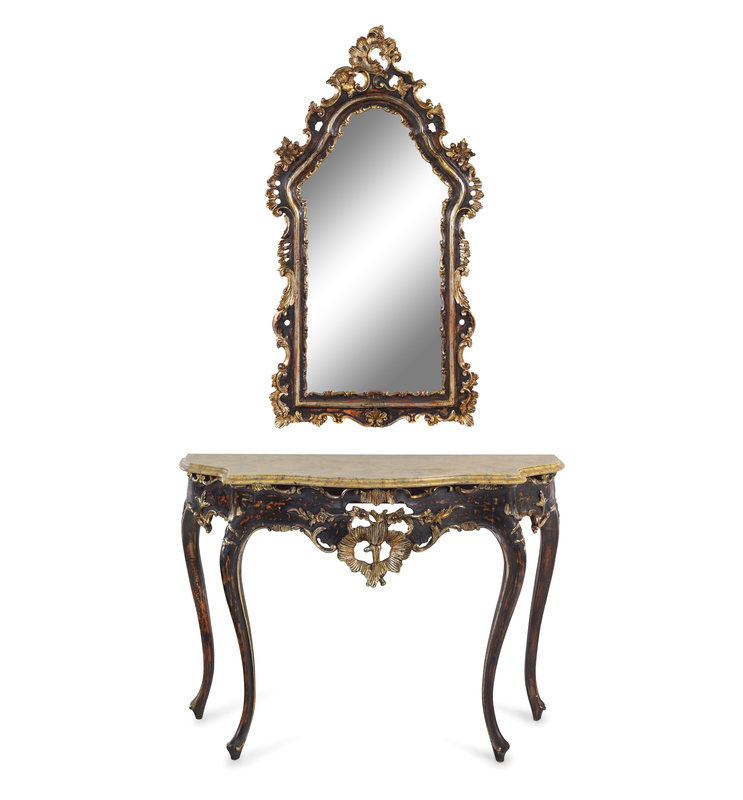 A Louis XV Style Painted and Part-Silvered Console Table and Mirror