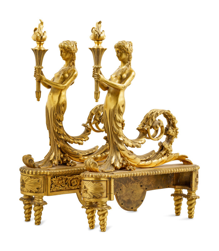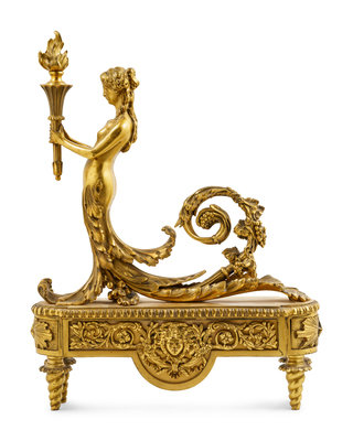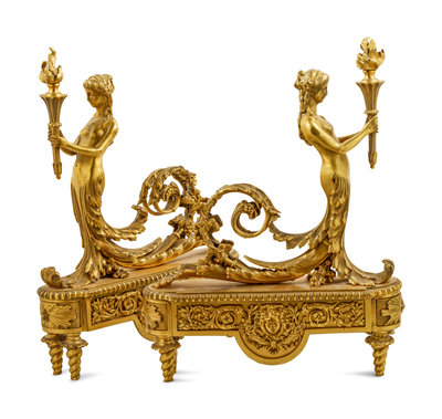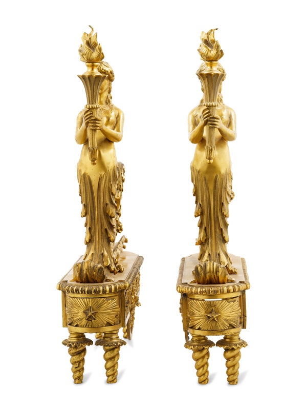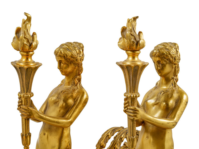 A Pair of Napoleon III Style Gilt Bronze Figural Chenets
