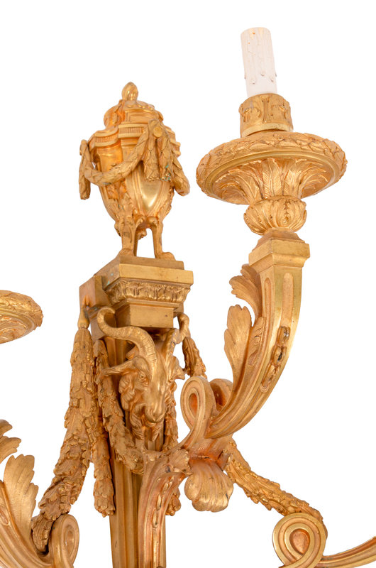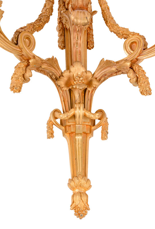 A Pair of Louis XV Style Gilt Bronze Three-Light Sconces