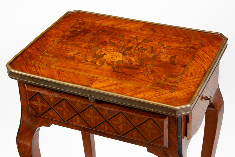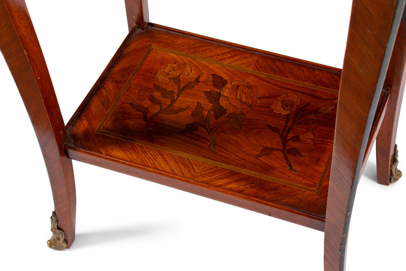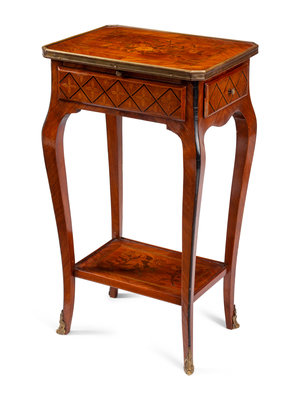 A Louis XV Style Gilt Bronze Mounted Marquetry Mechanical Table