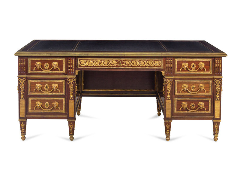 A Louis XV Style Gilt Bronze Mounted Mahogany Desk