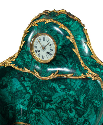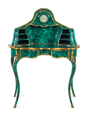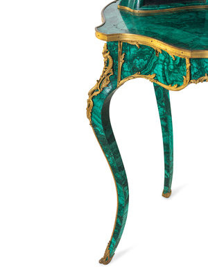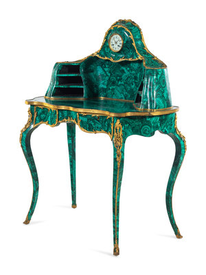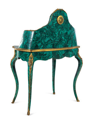 A Louis XV Style Gilt Bronze Mounted Malachite Bureau de Dame
