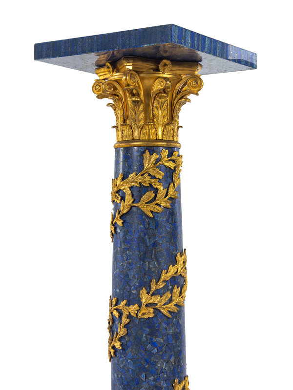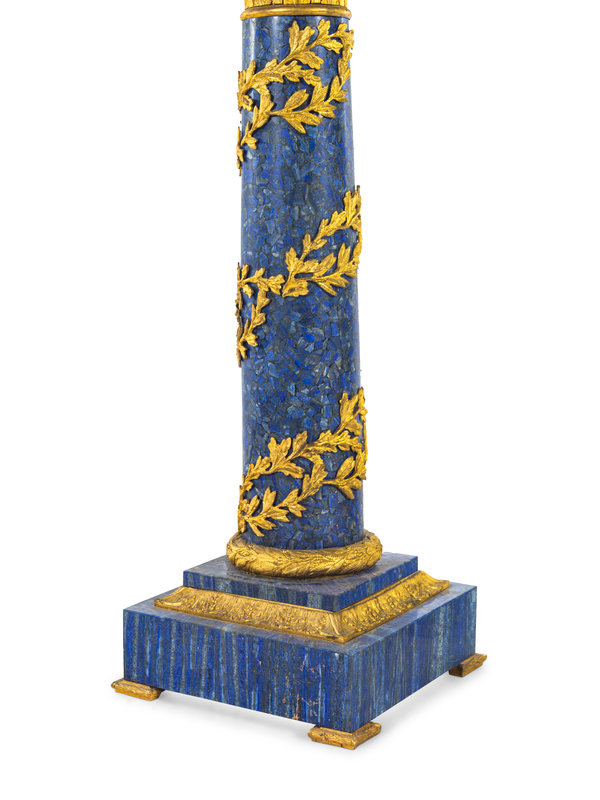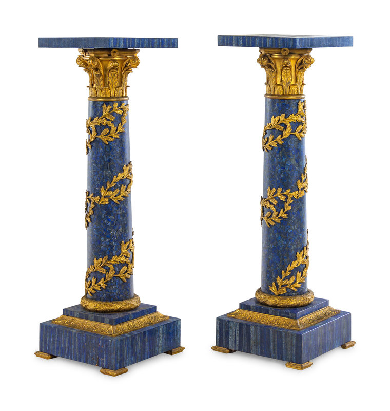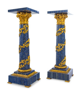 A Pair of Louis XV Style Gilt Bronze Mounted Lapis Lazuli Pedestals