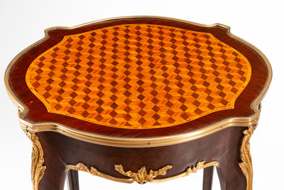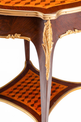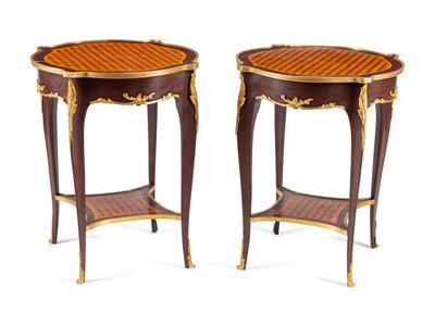 A Pair of Louis XV Style Gilt Bronze Mounted Parquetry Guéridons