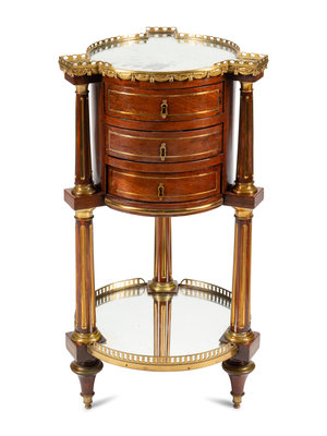 A Louis XVI Brass Inlaid Mahogany Mirror-Top Table en Chiffonier