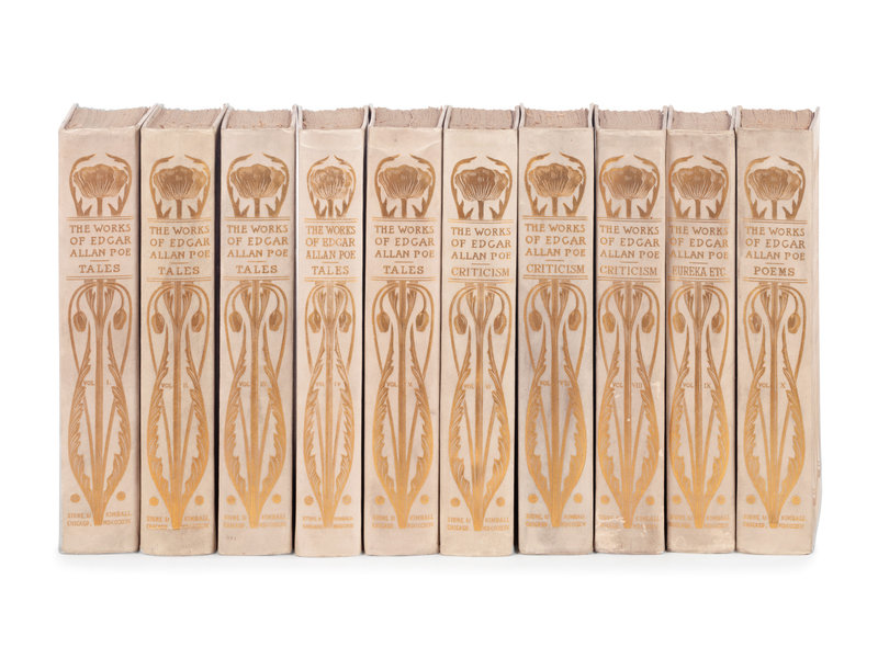 [BINDINGS]. POE, Edgar Allan (1809-1849). Works. Edmund Clarence Stedman and George Edward Woodberry, editors. Chicago: Stone & Kimball, 1894-1895.