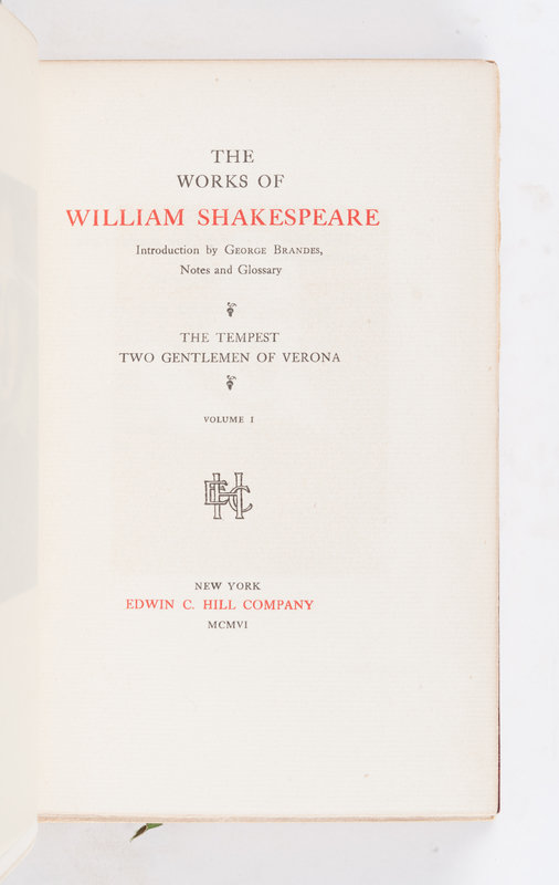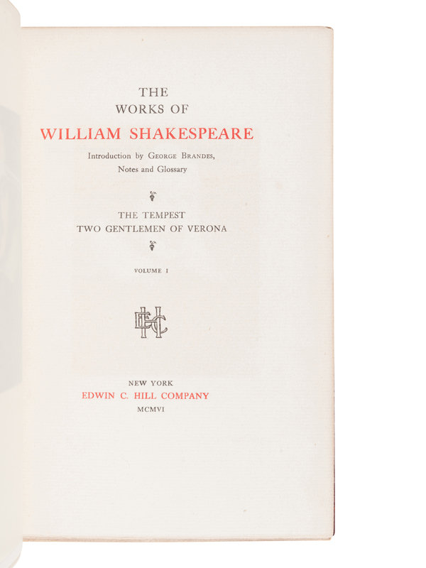 [BINDINGS]. SHAKESPEARE, William (1564-1661). Works. New York: Edwin C. Hill Company, 1906.