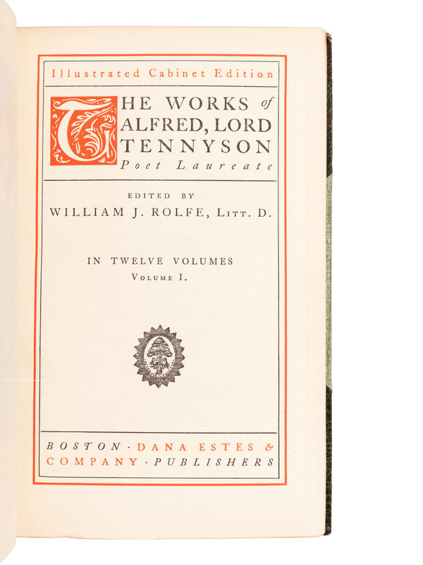 [BINDINGS]. TENNYSON, Alfred, Lord, (1809-1892). Works. Boston: Dana Estes & Company, 1895-1898.