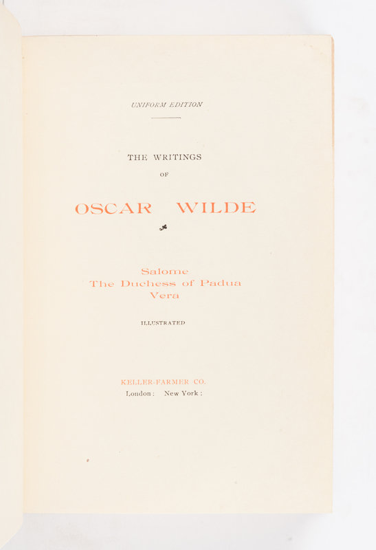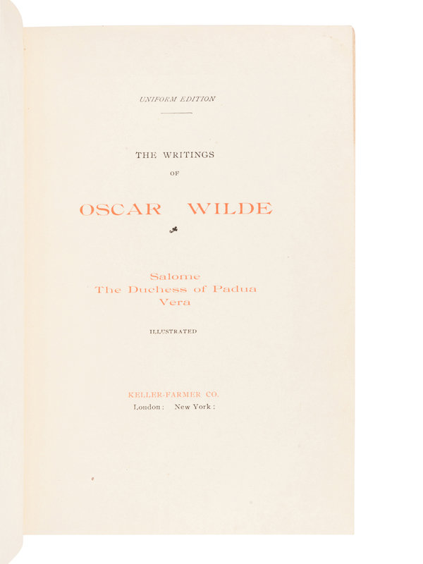 [BINDINGS]. WILDE, Oscar (1854-1900). Writings. London and New York: Keller-Farmer Co., 1907.
