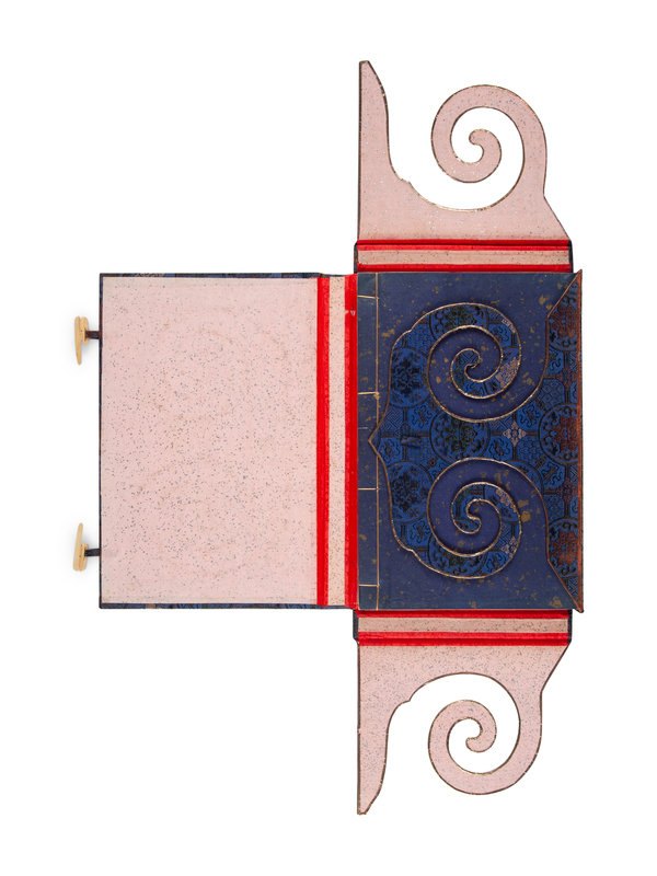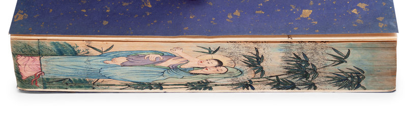 2 volumes bound in one, comprising volumes 278-286 (of ca 1,000), 8vo (278 x 180 mm). (Light toning to margins.) 20th-century Chinese gilt-speckled blue wrappers and FORE-EDGE PAINTING of Madonna and Child in Chinese Sung style (outer fold of each sheet opened); contemporary folding brocade case, a cloth pattern of iridescent pink, green, orange and brown flowers on a blue background, the inner flaps of interlocking scroll form with gilt edges, bone toggles.