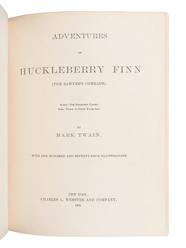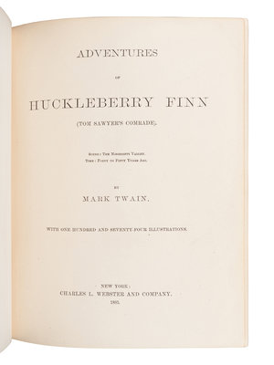 CLEMENS, Samuel Langhorne ("Mark Twain") (1835-1910). Adventures of Huckleberry Finn. New York: Charles L. Webster and Company, 1885.