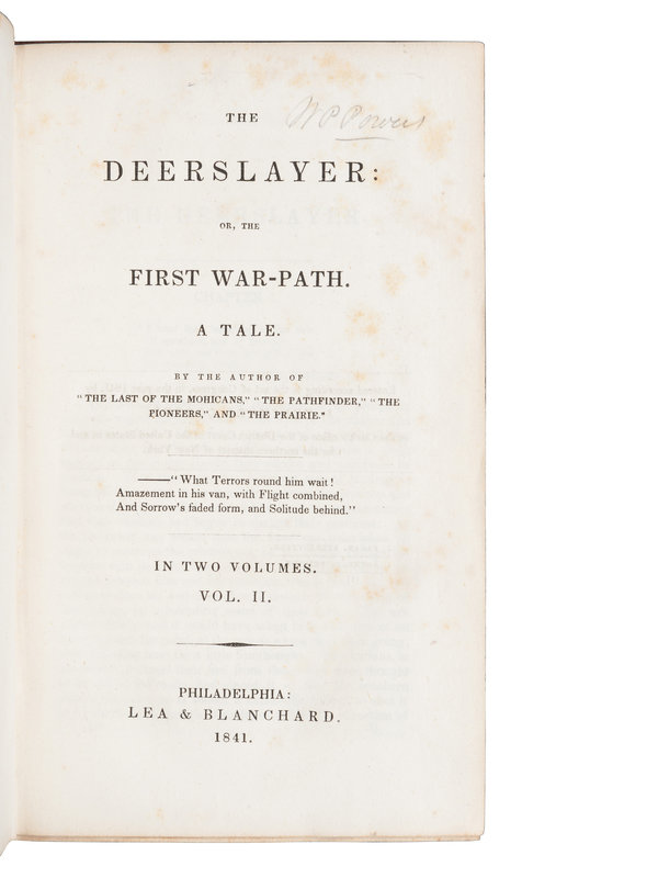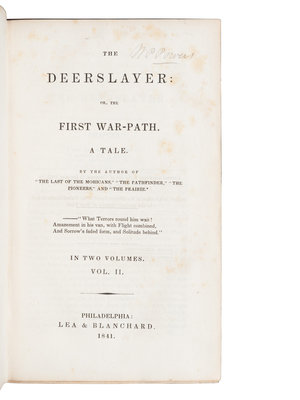 COOPER, James Fenimore (1789-1851). The Deerslayer; or, the First War-Path. A Tale. Philadelphia: Lea & Blanchard, 1841.