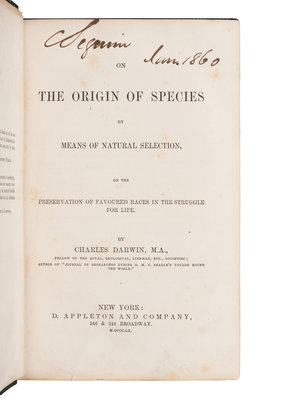 DARWIN, Charles (1809-82). On the Origin of Species by means of natural selection. New York: D. Appleton, 1860.