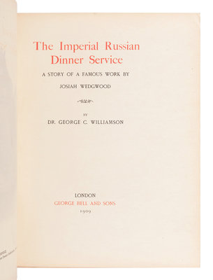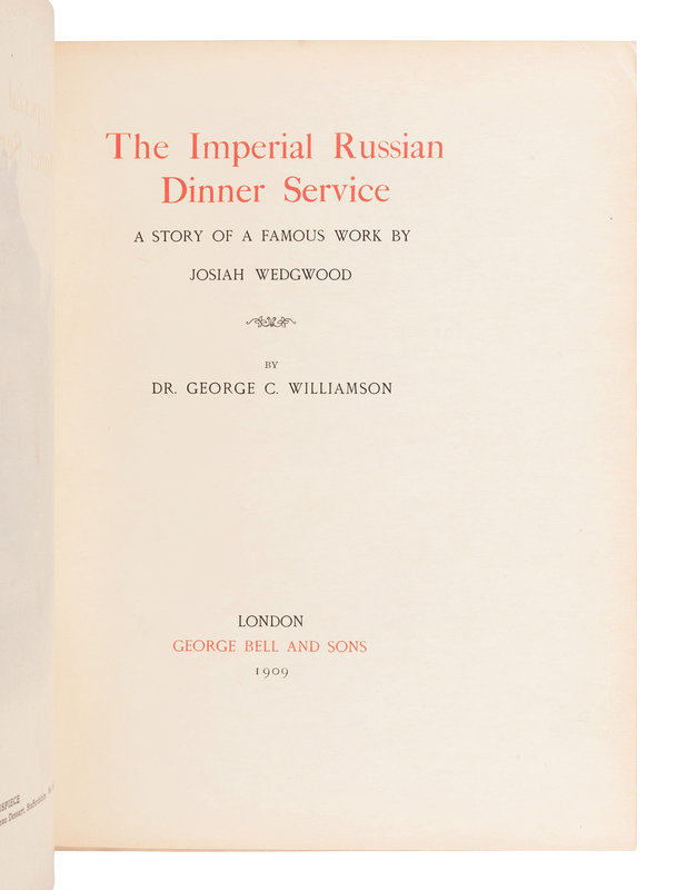 [FURNITURE & DECORATIVE ARTS]. WILLIAMSON, George C. (1858-1942) The Imperial Russian Dinner Service. A Story of a Famous Work by Josiah Wedgwood. London: George Bell and Sons, 1909.