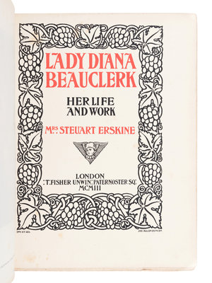 ERSKINE, Beatrice Caroline (1860-1948). Lady Diana Beauclerk. Her Life and Work. London: T. Fisher Unwin, 1903. 4to. Color frontispiece, numerous color plates and in-text illustrations, title-page printed in red and black. (Some spotting to a few leaves.) Original maroon gilt-decorated cloth, top edge gilt (corners slightly bumped, some rubbing to edges, very light sunning to spine). FIRST EDITION.