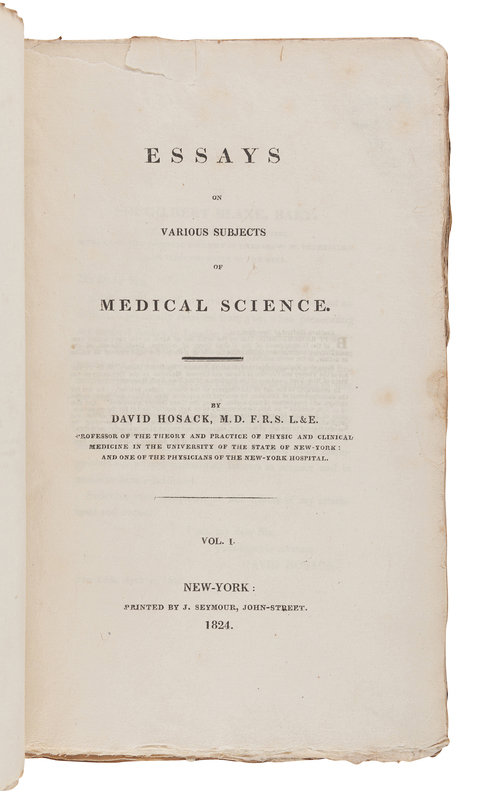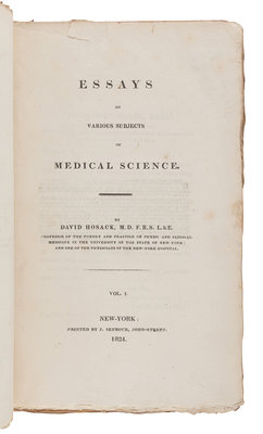 HOSACK, David. Essays on Various Subjects of Medical Science. New York: Printed by J. Seymour, 1824.