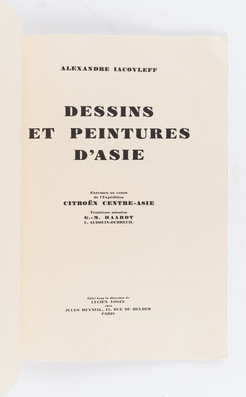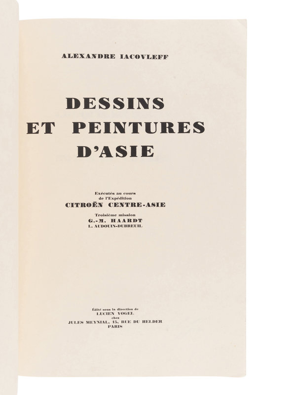 IACOVLEFF, Alexandre (1887-1938). Dessins et Peintures d'Asie. Exécutés au Cours de l'Expedition Citroën Centre-Asie. Paris: Jules Meynial, 1934.