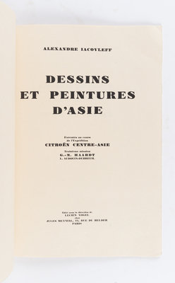 LIMITED EDITION, number 147 of 500 copies, SIGNED BY IACOVLEFF in pencil to half-title. During 1931-1932, Iacovleff was the artistic adviser to the Croisière Jaune expedition sponsored by the car maker Citroën. The artwork Iacovleff produced during this expedition includes this series of portraits of the peoples and landscapes of central Asia. [Laid in:] Autograph letter signed “Iacovleff” to Louis V. Ledoux, n.d.