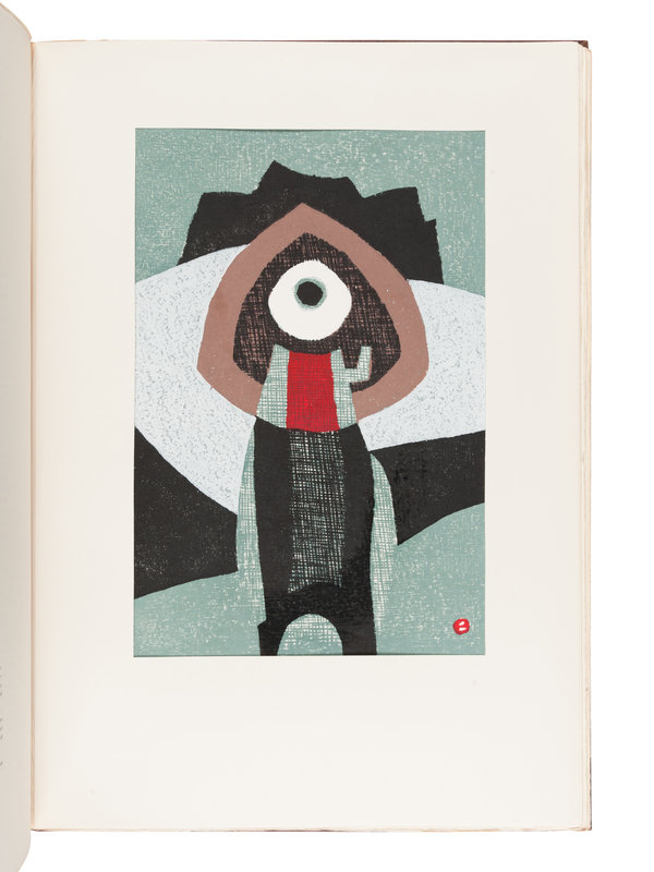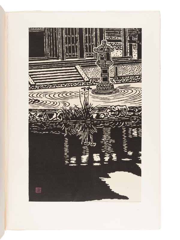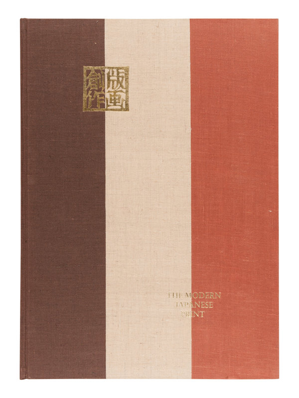 Large folio. 10 woodblock or stenciled plates by Hiratsuka Un'Ichi, Maekawa Sempan, Mori Yoshitoshi, and others each signed and numbered by the artist. Original 3-tone gilt-stamped cloth; original wooden slipcase.