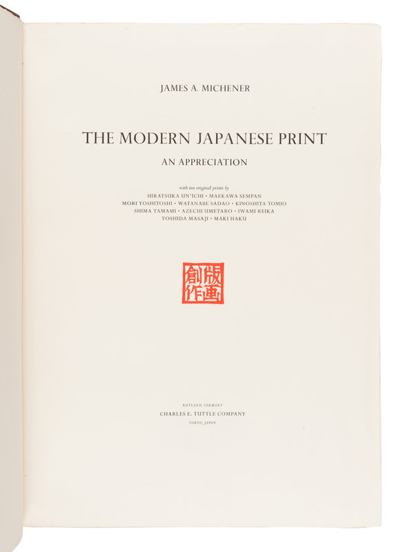 MICHENER, James A. (1907-1997). The Modern Japanese Print. An Appreciation. Rutland, VT and Tokyo: Charles E. Tuttle Company, 1962.
