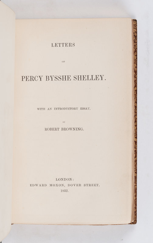 SHELLEY, Percy Bysshe (1792-1822). Letters of Percy Bysshe Shelley. London: Edward Moxon, 1852.
