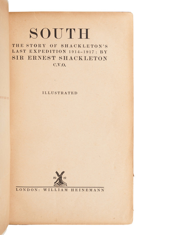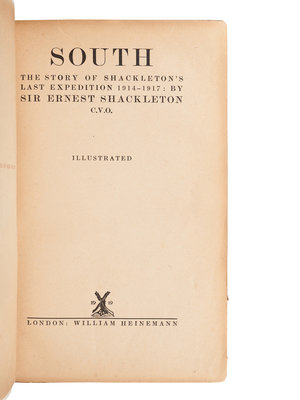 [TRAVEL & EXPLORATION]. SHACKLETON, Ernest Henry, Sir (1874-1922). South. The Story of Shackleton’s Last Expedition 1914-1917. London: William Heinemann, 1919.